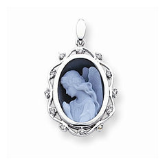 14k White Gold Diamond 12x16mm Guardian Angel Agate Cameo Pendant