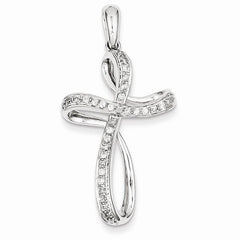 14k White Gold & Diamond Cross Pendant, Quality AA (G-H Color, SI1-SI2 Clarity)