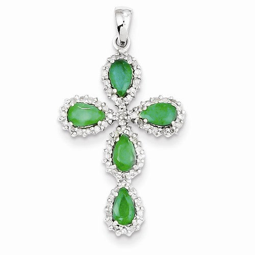 14k White Gold Diamond & Emerald Cross Pendant, Quality A (G-I Color, SI2 Clarity)