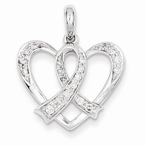 14k White Gold & Diamond Heart with Awareness Ribbon Pendant