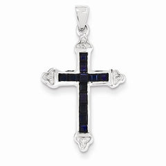 14k White Gold Diamond & Sapphire Cross pendant, Alluring Pendants for Necklace