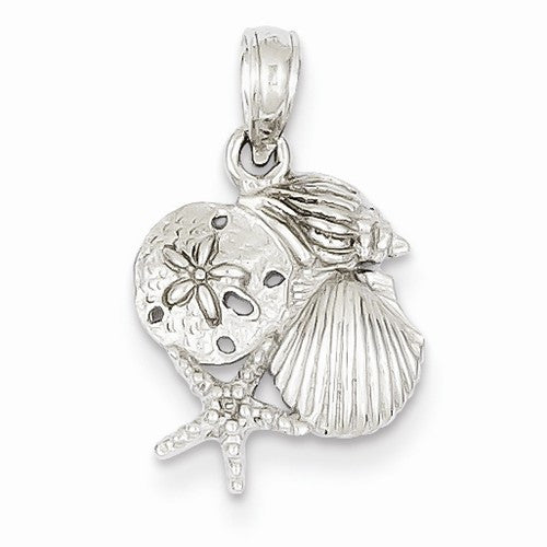 14k White Gold Four Shell Mini Cluster Pendant, Pendants for Necklace