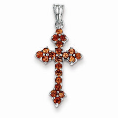 14k White Gold Garnet Cross pendant, Pendants for Necklace
