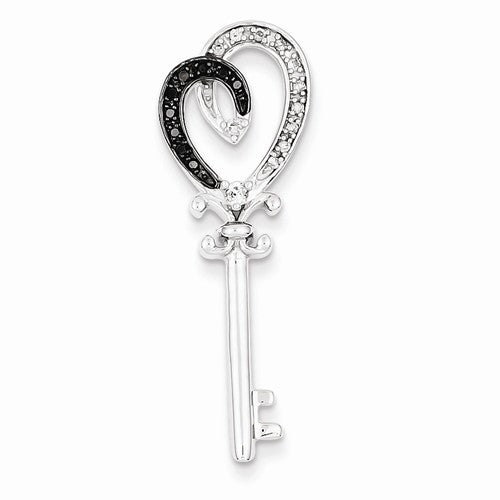 14k White Gold Heart Key Pendant, Quality AA (G-H Color, SI1-SI2 Clarity)