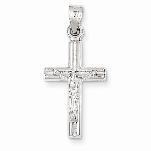 14k White Gold Hollow Crucifix Pendant