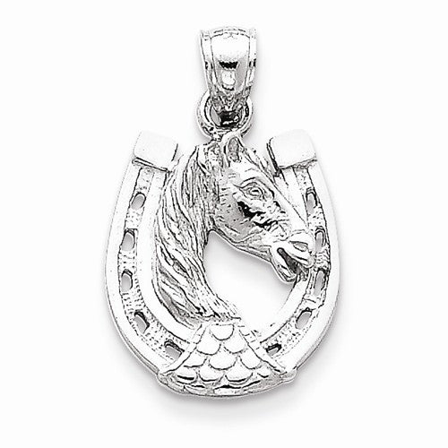 14k White Gold Horse Head in Horseshoe Pendant, Pendants for Necklace
