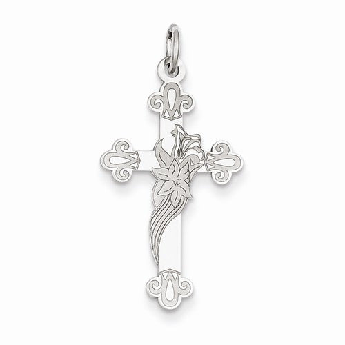 14k White Gold Laser Designed Cross Pendant, Fine Pendants for Necklace