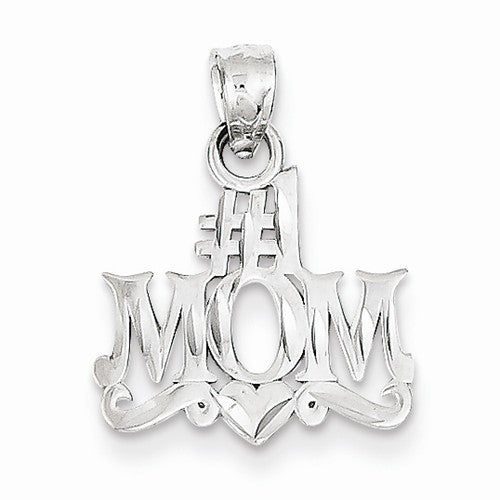 14k White Gold Polished #1 Mom Pendant, Pendants for Necklace