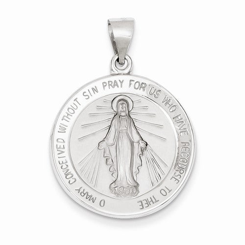 14k White Gold Polished and Satin Miraculous Medal pendant