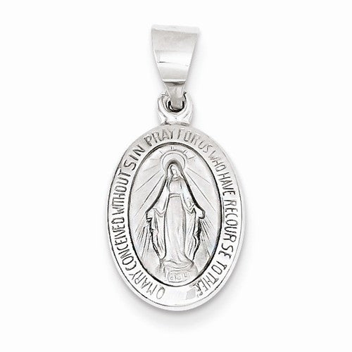 14k White Gold Polished and Satin Miraculous Medal pendant