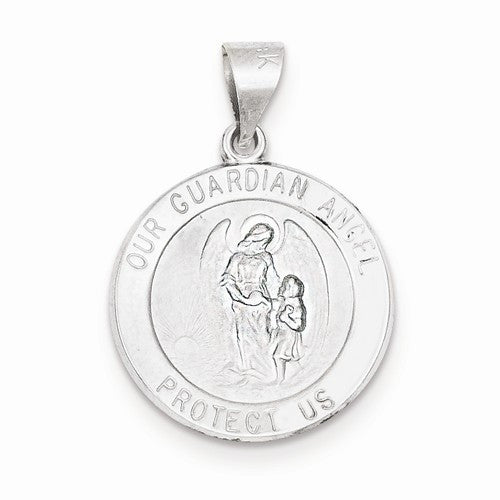 14k White Gold Polished and Satin Our Guardian Angel Medal Pendant