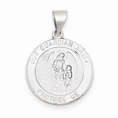 14k White Gold Polished and Satin Our Guardian Angel Medal Pendant, Pendants for Necklace