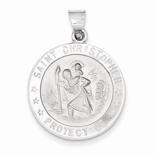 14k White Gold Polished and Satin St. Christopher Medal pendant