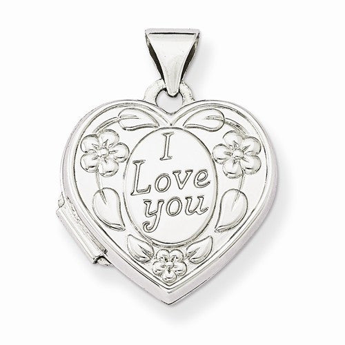 14k White Gold Polished Heart-Shaped I Love You Locket
