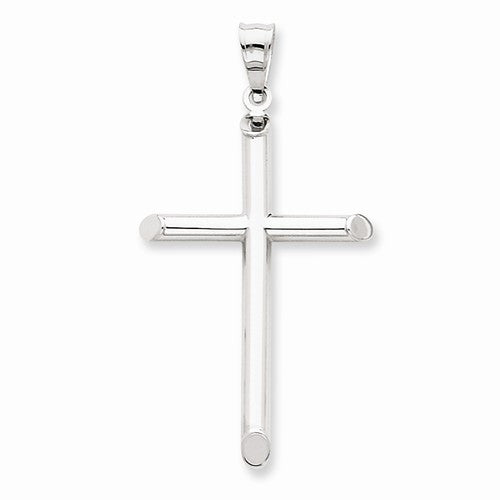 14k White Gold Polished Hollow Cross Pendant, Pendants for Necklace
