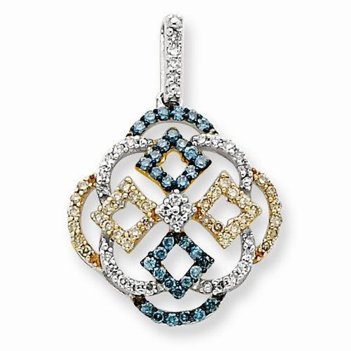 14k White Gold & Rhodium w/Blue & White Diamond Pendant, Quality AA (G-H Color, SI1-SI2 Clarity)