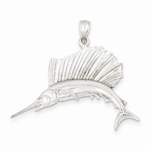 14k White Gold Sailfish Pendant, Pendants for Necklace