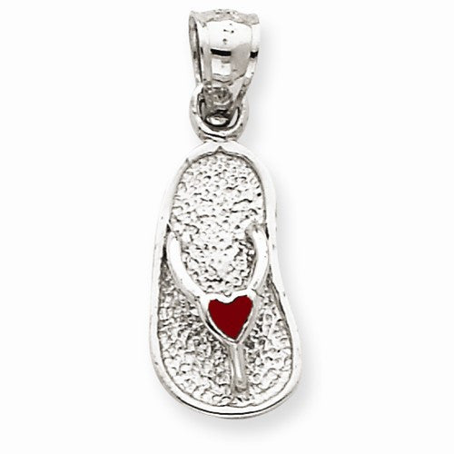 14k White Gold Solid 3-Dimensional Red Enameled Sandal Pendant