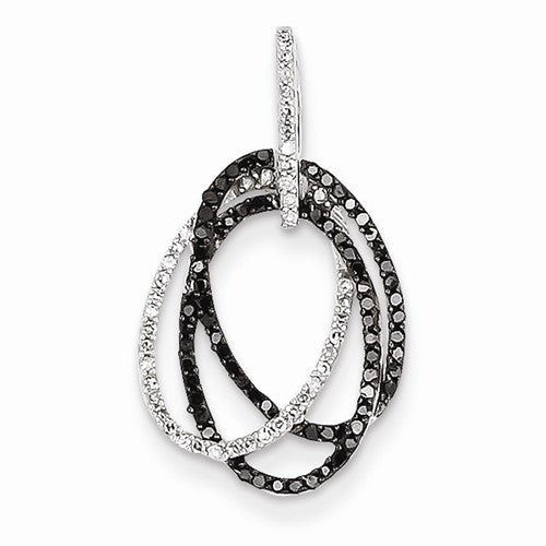 14k White Gold White and black-diamond Ovals Pendant, Quality AA (G-H Color, SI1-SI2 Clarity)