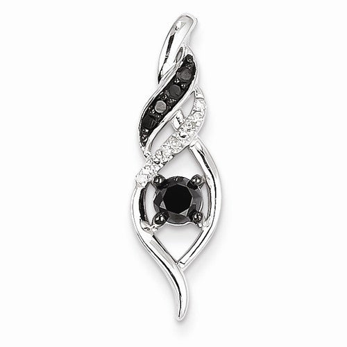 14k White Gold White & black-diamond Twist Pendant, Quality AA (G-H Color, SI1-SI2 Clarity)