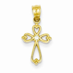 14k Yellow Gold Diamond Accented Cross Pendant, Pendants for Necklace