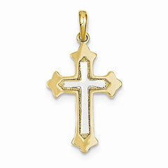 14k Yellow Gold Fleur De Lis Cross Pendant