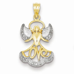 14k Yellow Gold Rhodium Plated Angel w/Love Pendant