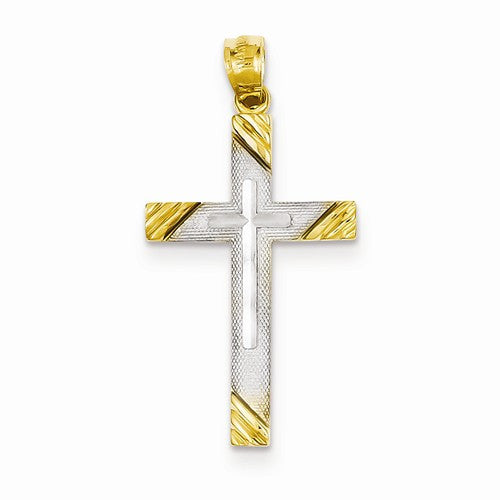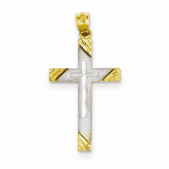 14k Yellow Gold Rhodium Plated Cross Pendant