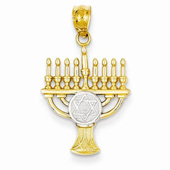 14k Yellow Gold Rhodium Plated Menorah Pendant