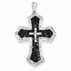 14KW Rhodium black-diamonds & White Diamond Cross Pendant, Quality A (G-I Color, SI2 Clarity)