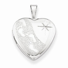 Sterling Silver 16mm D/C Footprints Heart Locket
