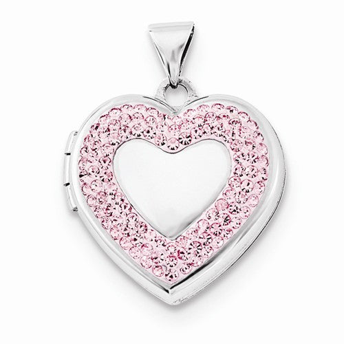 Sterling Silver 18mm Heart Light Rose Swarovski Elements Border Locket