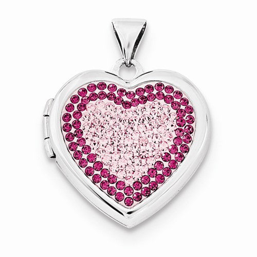 Sterling Silver 18mm Heart Rose/Light Rose Swarovski Elements Locket