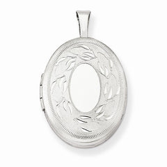 Sterling Silver 19mm Polished and Brushed Leaves Oval Locket