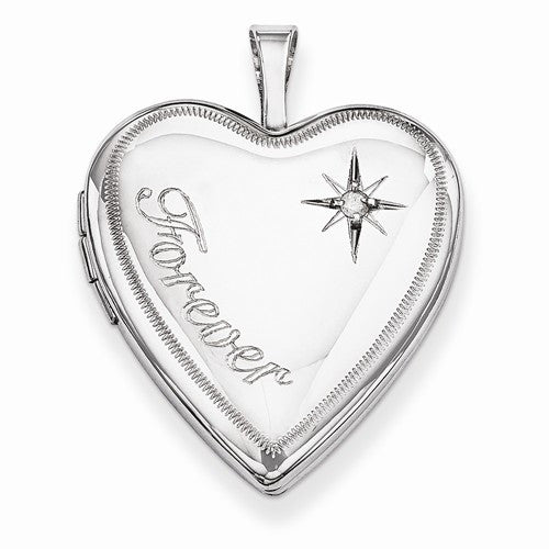 Sterling Silver 20mm Forever with Diamond Star Heart Locket