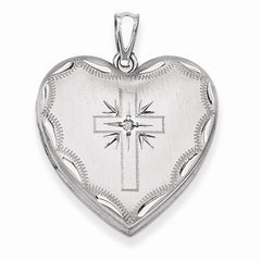 Sterling Silver 24mm w/ Diamond Cross Design Family Heart Locket