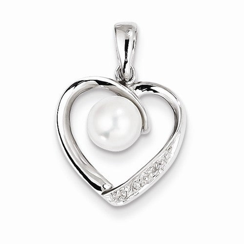 Sterling Silver 6mm FW Cultured Pearl & Diamond Heart Pendant