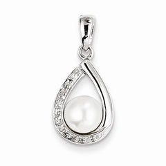 Sterling Silver 6mm FW Cultured Pearl & Diamond Teardrop Pendant