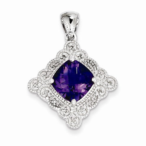 Sterling Silver Amethyst and Diamond Pendant