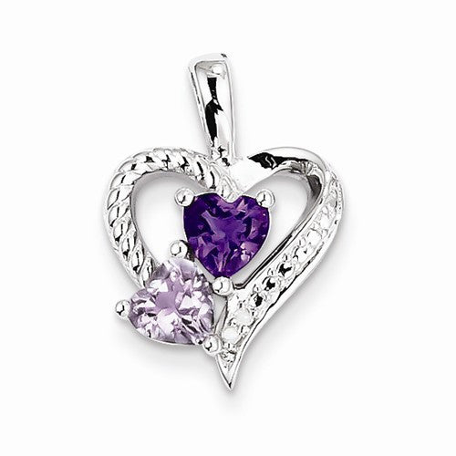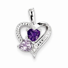 Sterling Silver Amethyst, Pink Quartz & Diamond pendant