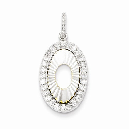 Sterling Silver and Flash Gold Plated CZ Diamond Cut Oval Pendant