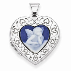 Sterling Silver Angel Agate Cameo 21mm 2-Frame Heart Locket