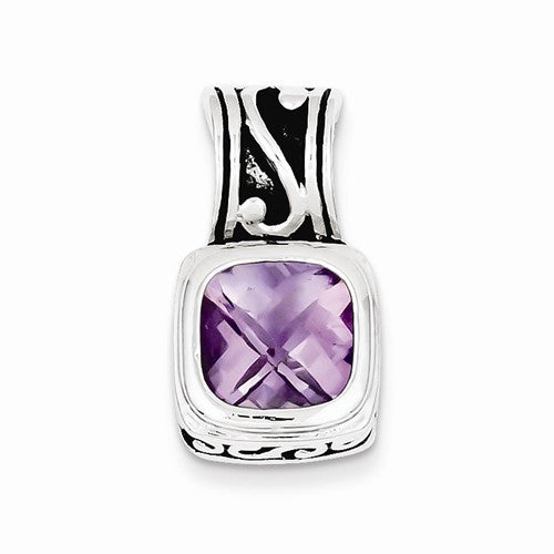 Sterling Silver Antiqued Amethyst Pendant, Pendants for Necklace