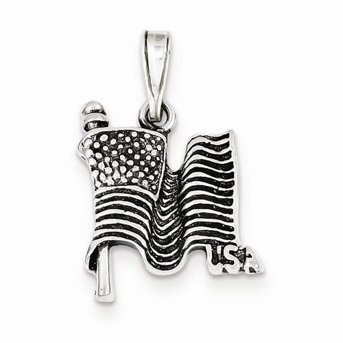 Sterling Silver Antiqued Flag Pendant