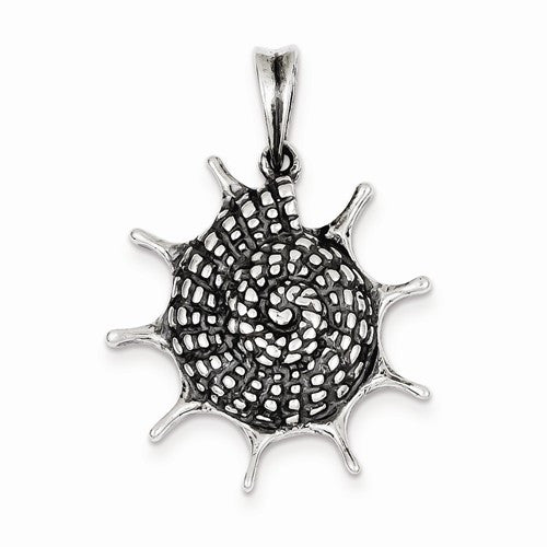 Sterling Silver Antiqued & Polished Seashell Pendant