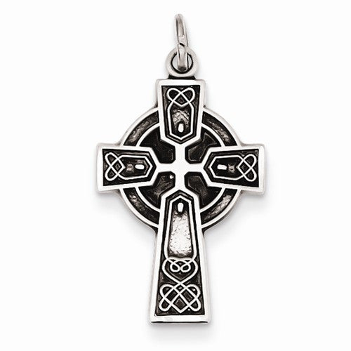 Sterling Silver Antiqued Satin Celtic Cross Pendant