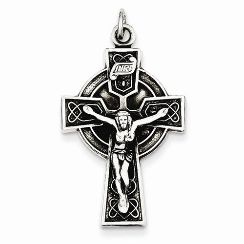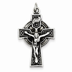 Sterling Silver Antiqued Satin Irish Crucifix Cross pendant