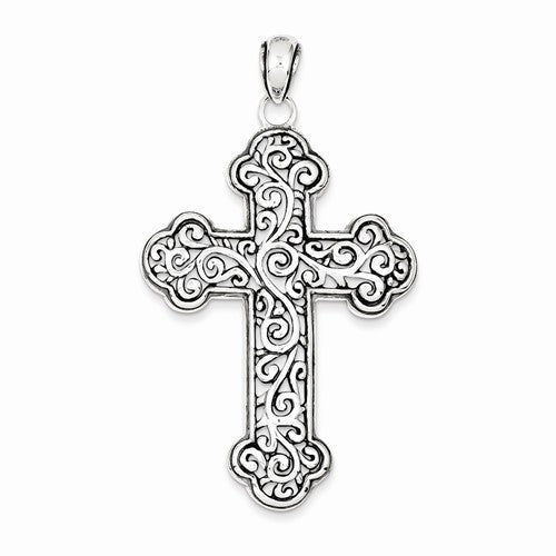 Sterling Silver Antiqued Swirl Cross pendant, Fine Pendants for Necklace