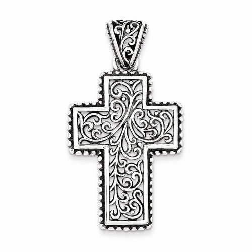 Sterling Silver Antiqued Swirl Cross pendant