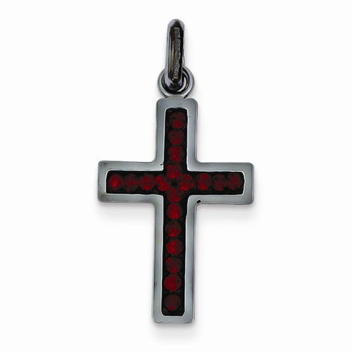 Sterling Silver Black Ceramic Red Swarovski Elements Cross pendant